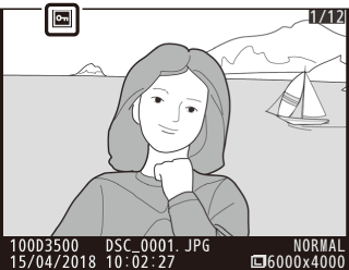 Billedet markeres med ikonet P. For at fjerne beskyttelsen fra et billede, så det kan slettes, skal du få vist eller markere det på miniaturelisten og derefter trykke på knappen A (L).