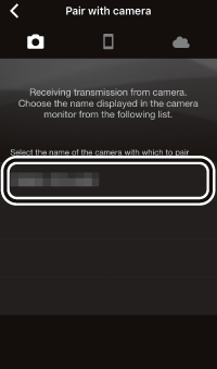 SnapBridge viser muligvis ikke kameranavnet, hvis der startes, før kameraet viser anmodningen om start (trin 1). Afslut SnapBridge, og bekræft, at den ikke kører i baggrunden (proceduren varierer med smartenheden; se dokumentationen, der leveres med din enhed, for detaljer), før du trykker på ikonet SnapBridge for at starte SnapBridge igen.