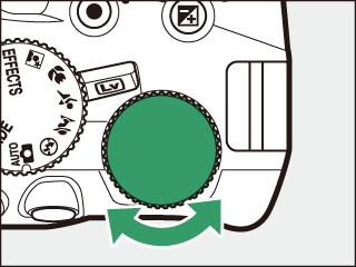 Kui säritusmõõturid on sisse lülitatud, pöörake käsuvaliku nuppu säriaja Time (aeg) (&) valimiseks.