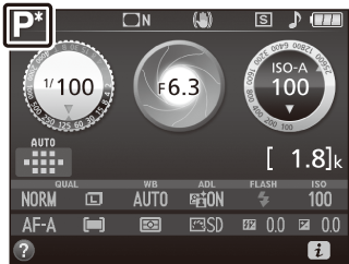 Režiimis P on käsuvaliku nuppu pöörates võimalik valida erinevaid säriaja ja ava kombinatsioone („paindlik programm”). Pöörake nuppu paremale suurte avade (väikeste f-arvude) ja lühikeste säriaegade, vasakule väikeste avade (suurte f-arvude) ja pikkade säriaegade jaoks. Kõik kombinatsioonid annavad sama särituse.