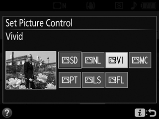 Tõstke võttemenüüs esile Set Picture Control (Picture Controli seade) ja vajutage 2. Tõstke esile soovitud Picture Control ja vajutage 2.