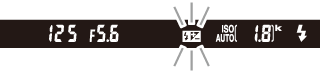 Ja ir atlasīta opcija Manual (Manuāli) un pacelta zibspuldze, skatu meklētājā mirgo Y ikona, bet informācijas displejā parādās 0 ikona.