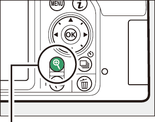 Trykk på X-knappen for å zoome inn for å kunne fokusere nøyaktig i live view (0 Forhåndsvisning av zoom i live view).
