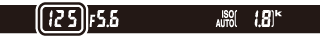 Dersom et E- eller G-objektiv er montert (0 Kompatible CPU-objektiver) og en annen lukkertid enn "B-innstilling" eller "Tid" er valgt (0 Lange eksponeringstider (kun eksponeringskontroll M)), viser eksponeringsindikatoren i søkeren og informasjonsvisningen om fotografiet vil bli under- eller overeksponert ved gjeldende innstillinger.
