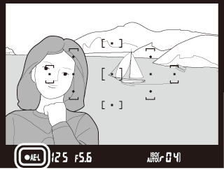 Kým je účinná expozičná pamäť, indikátor AE-L sa bude zobrazovať v hľadáčiku a na monitore.