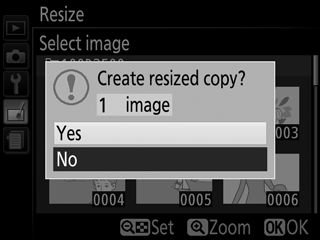 Zobrazí sa dialógové okno s potvrdením. Zvýraznite možnosť Yes (Áno) a stlačením tlačidla J uložte kópie so zmenenou veľkosťou.