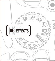 Naslednje učinke lahko izberete, tako da zavrtite vrtljivi gumb za izbiro načina na q in vrtite vrtljivi gumb za upravljanje, dokler se na zaslonu ne pojavi želena možnost.