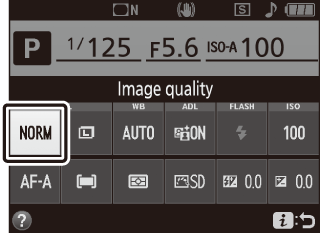 Pritisnite gumb P, nato v prikazu informacij osvetlite trenutno kakovost slike in pritisnite J.