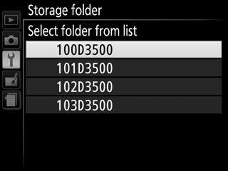 Pritisnite 4 ali 2, da osvetlite številko, in pritisnite 1 ali 3 za spremembo. Če mapa z izbrano številko že obstaja, bo levo od številke mape prikazana ikona W, X ali Y: