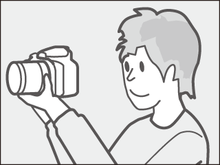 Fotografisanje tražilom: Kada kadrirate fotografije u tražilu, držite rukohvat u svojoj desnoj ruci i pomerajte telo fotoaparata ili objektiva svojom levom rukom. Neka vaši laktovi budu naspram vaših grudi.