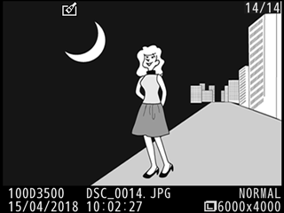 Koristite višenamenski birač da biste markirali prvu fotografiju u preklapanju. Da biste pregledali markiranu fotografiju u punom kadru, pritisnite i držite X dugme. Pritisnite J da biste izabrali markiranu fotografiju i vratili se na pregled prikaza.
