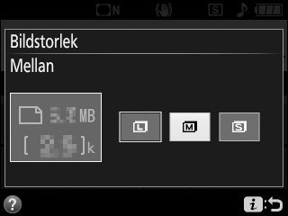 Tryck på P-knappen, markera sedan den aktuella bildstorleken på informationsdisplayen och tryck på J.