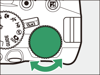 Vrid på kommandoratten för att välja önskad slutartid: vrid åt höger för kortare tider, åt vänster för längre tider.