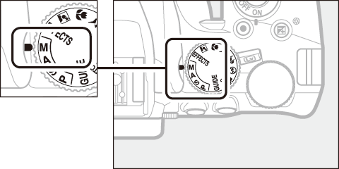 | M | Manuell (0 Läge M (Manuell)): Användaren styr både slutartid och bländare. Ställ in slutartiden på “Bulb” eller “Time (Tid)” för långtidsexponeringar. |