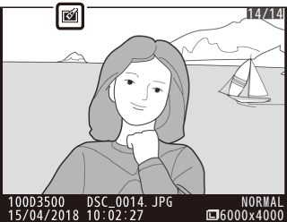 Tryck på J för att skapa en retuscherad kopia. Förutom på fotoinformationssidan “endast bild” (0 Fotoinformation) indikeras retuscherade kopior med en Z-ikon.