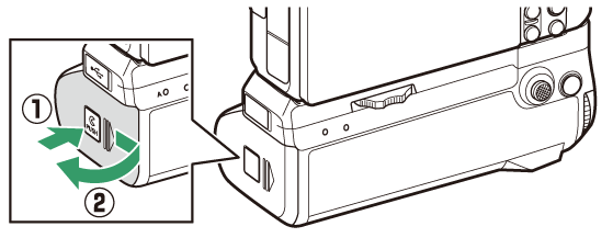 MB-N11 var izmantot līdz pat diviem EN‑EL15c atkārtoti uzlādējamiem litija jonu akumulatoriem. Pirms bateriju ievietošanas izslēdziet kameru. Lai novērstu nejaušu darbību bateriju maiņas laikā, jums arī jāatstāj MB-N11 vadības slēdzene L (bloķēta) pozīcijā, līdz nomaiņa ir pabeigta.