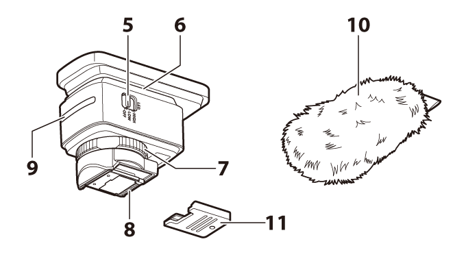 7 | Lukkorengas | Kiinnitä mikrofoni kameran digitaaliseen varusteluistiin kääntämällä lukitusrengasta. |