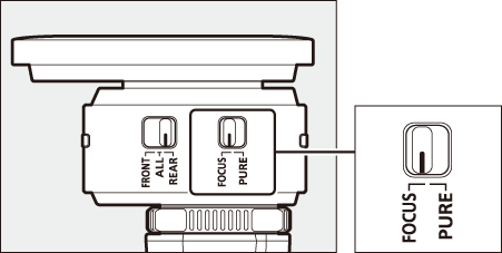 - PURE : Šį režimą naudokite scenos garsui įrašyti „tokiam, koks yra“, įskaitant žemus dažnius, pavyzdžiui, muzikos instrumentų pasirodymams ar lauko įrašams. Šis režimas leidžia dar labiau patikslinti garsą iki norimos kokybės poapdorojimo metu, nes jis yra atsparus montažo pablogėjimui. Rekomenduojame garsą įrašyti 32 bitų slankiojo formato.