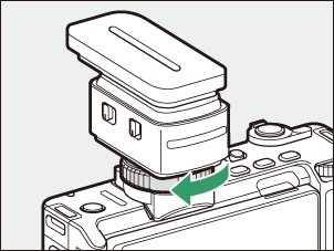 Če želite odstraniti ME-D10, izklopite fotoaparat in zrahljajte zaklepni obroč tako, da ga zavrtite v nasprotni smeri od smeri pritrditve.