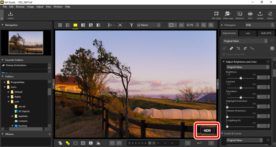 Zobrazenie fotografií HLG v NX Studio