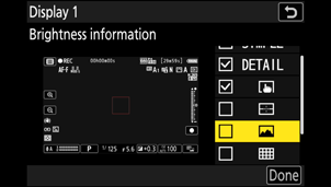 Select (M) [Brightness information] for Custom Setting g [Video] > [Custom monitor shooting display].