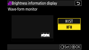Select [Wave-form monitor] for Custom Setting g [Video] > [Brightness information display] and press J.
