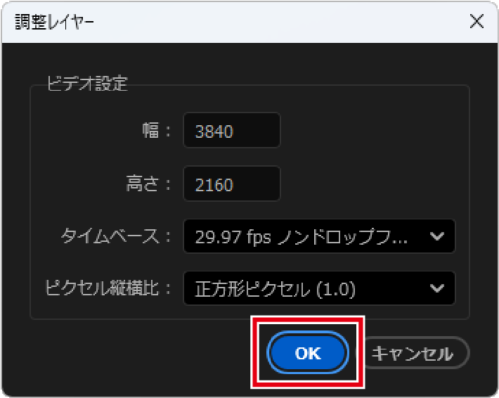 [プロジェクト]パネル内に調整レイヤーが作成されます。