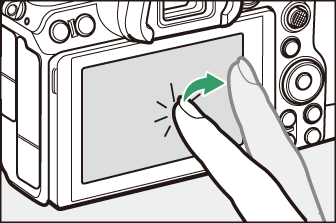Dotykový monitor nabízí řadu ovládacích prvků, které lze ovládat dotykem prstů na displeji. Během fotografování s hledáčkem jsou dotykové ovládací prvky deaktivovány a nelze je použít k ostření a podobně.
