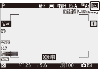 Vyberte oříznutí filmu z [ ] a [ ]. Vyberte [ ], chcete-li natáčet filmy v takzvaném „formátu videa založeného na FX “, [ ], chcete-li natáčet ve „formátu videa založeného na DX “. Oříznutí filmu je pevně nastaveno na 1,7× při velikosti snímku 3840 × 2160. Rozdíly jsou znázorněny níže.