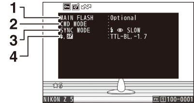 Data blesku se zobrazují pouze u snímků pořízených volitelnými blesky ( Fotografování s bleskem na fotoaparátu , Fotografování s bleskem na dálku ).