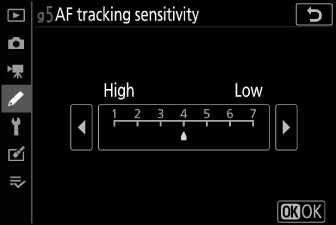 Citlivost sledování AF pro režim videa lze nastavit na hodnoty od 1 do 7.