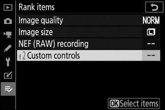 Moje menu lze použít k vytvoření a úpravě přizpůsobeného seznamu až 20 položek z menu přehrávání, fotografování, filmování, uživatelských nastavení, nastavení a retušování. Možnosti lze přidávat, odstraňovat a měnit jejich pořadí, jak je popsáno níže.