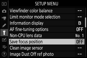 Do nabídky nastavení byla přidána možnost [ Save focus position ]. Je-li vybrána možnost [ Zapnuto ], poloha zaostření platná při vypnutí fotoaparátu bude při příštím zapnutí obnovena.