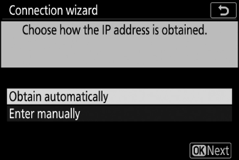 Válassza ezt a lehetőséget, ha a hálózat úgy van beállítva, hogy automatikusan adja meg az IP-címet. A „konfiguráció kész” üzenet jelenik meg az IP-cím hozzárendelése után.