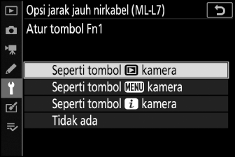 ]/[ ]: Pilih peran yang ditetapkan ke tombol Fn1 dan Fn2 kendali jarak jauh.