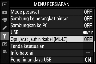 Menu Persiapan Item “Opsi jarak jauh nirkabel (ML-L7)”