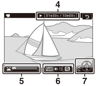Videozáznamy sú označené ikonou 1 . Klepnutím na a a na displeji alebo stlačením tlačidla J spustíte prehrávanie (ukazovateľ priebehu zobrazuje vašu približnú polohu vo filme).
