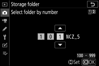 Ak priečinok so zvoleným číslom už existuje, naľavo od čísla priečinka sa zobrazí ikona W , X alebo Y Stlačením J dokončíte operáciu a vrátite sa do hlavnej ponuky; ak vyberiete priečinok označený W alebo X , vyberie sa ako priečinok pre nové obrázky.
