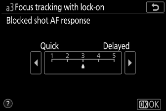 Vyberte, ako rýchlo zareaguje zaostrovanie, ak niečo prejde medzi objektom a fotoaparátom, keď je pre režim zaostrovania zvolený AF-C .![]()