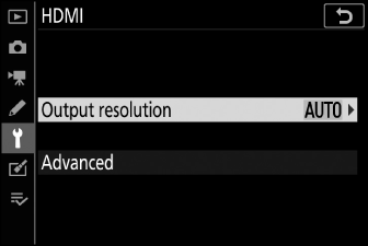 Vyberte formát pre výstup obrázkov do zariadenia HDMI . Ak vyberiete možnosť [ ], fotoaparát automaticky vyberie vhodný formát.