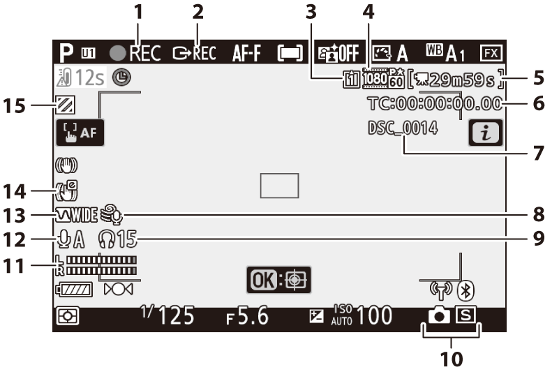 Indikátor nahrávania ( Snímanie filmov ( režim b ) ) Indikátor „žiadny film“ ( ikona 0 ) |
