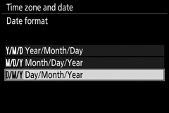 Izmantojiet lietotni SnapBridge, lai sinhronizētu kameras pulksteni ar viedtālruņa vai planšetdatora (viedierīces) pulksteni. Plašāku informāciju skatiet SnapBridge tiešsaistes palīdzībā.