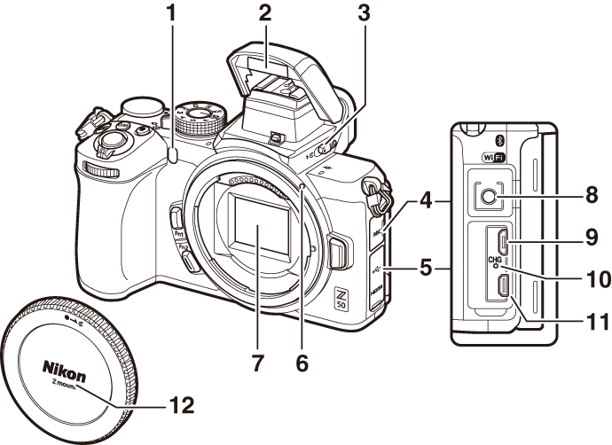 | 12 | Sánka na príslušenstvo (pre voliteľnú zábleskovú jednotku) |