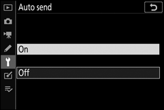 Ak chcete odovzdať nové fotografie hneď po ich nasnímaní, vyberte možnosť Zapnuté pre položku Pripojiť k počítaču > Možnosti > Automatické odoslanie . Nahrávanie sa spustí až po zaznamenaní fotografie na pamäťovú kartu; skontrolujte, či je vo fotoaparáte vložená pamäťová karta. Videozáznamy a fotografie nasnímané v režime videozáznamu sa po dokončení nahrávania neodosielajú automaticky, ale musia sa nahrať zo zobrazenia prehrávania.