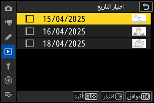 | i | [الصور الملتقطة في التواريخ المختارة] | يحذف كافة الصور التي تم التقاطها في تواريخ محددة. |