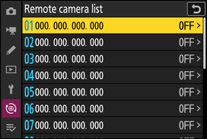За да редактирате настройките на отдалечената камера от главната камера, маркирайте камерата в списъка с отдалечени камери и натиснете 2 .