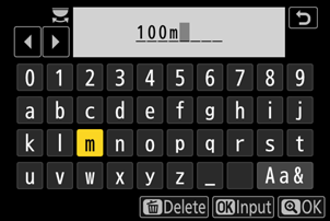 - Για να μετονομάσετε το προφίλ, πατήστε J . Για πληροφορίες σχετικά με την εισαγωγή κειμένου, ανατρέξτε στην ενότητα "Εισαγωγή κειμένου" ( 0 Εισαγωγή κειμένου ). Πατήστε X για να προχωρήσετε αφού πληκτρολογήσετε ένα όνομα.