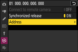 - Εάν θέλετε, μπορείτε στη συνέχεια να επεξεργαστείτε τη διεύθυνση IP της κάμερας επισημαίνοντας το [ Δ/θυνση ] και πατώντας 2 . Για επανασύνδεση, επιλέξτε [ ON ] για το [ Σύνδ. σε απομακρ. φωτ. μηχανή ]. Δεν θα πραγματοποιηθεί σύνδεση εάν δεν υπάρχει απομακρυσμένη κάμερα στην καθορισμένη διεύθυνση.