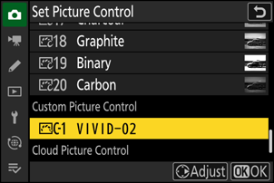 Valitse kohde Custom Picture Control (C-1 - C-9).