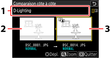 - Appuyez sur 4 ou 2 pour basculer entre la photo source et la copie retouchée.